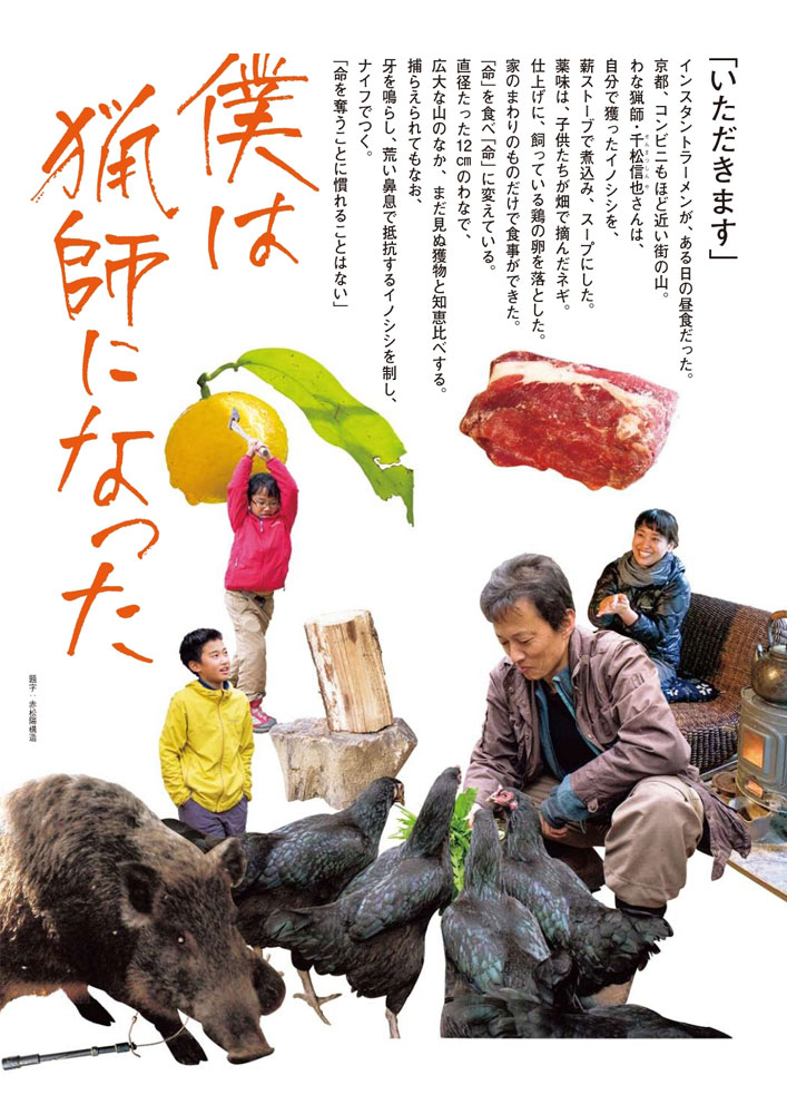 獲って、さばいて、食べる NHKの傑作ドキュメンタリーが完全新生映画版に。 追加取材300日超。知られざる猟師の暮らしに700日密着。 一昨年、NHKで放送されると同時に大反響を呼び、再放送希望が異例の1141件も届いた「ノーナレ けもの道 京都いのちの森」。京都で、猟をする千松信也さんの、彼にとっては平凡な日常に取材したドキュメンタリー。イノシシやシカをわなでとらえ、木などで殴打し気絶させ、ナイフでとどめをさす。命と向き合うために千松さんが選んだ営みに、残酷、という非難をはるかに超える「憧憬」が集まりました。 取材班は、放送後、千松さんとその暮らしにさらに迫るため、300日の追加取材を行い、およそ2年間の映像を編み直し、完全新生映画版となる『僕は猟師になった』が完成しました。 ナレーションを担当したのは、日本映画界に欠かせない若き名優・池松壮亮さん。千松さんに寄り添い、その独特な視線、思考、行動に観客を誘います。